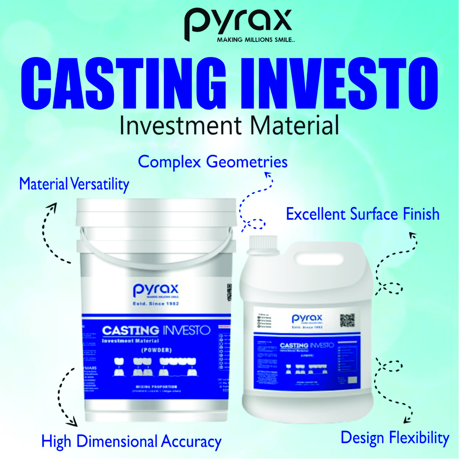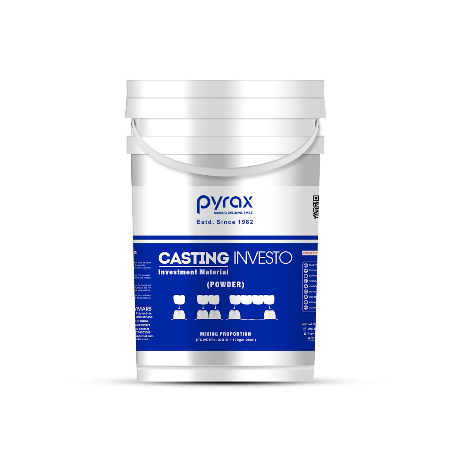 Dental investment material is a specially formulated refractory material used in dental laboratories to create accurate molds for casting crowns, bridges, inlays, onlays and partial denture frameworks. It is mixed with liquid to form a smooth, pourable consistency that precisely reproduces fine surface details of wax patterns. After setting, the investment provides sufficient strength and controlled expansion to compensate for metal shrinkage during casting.