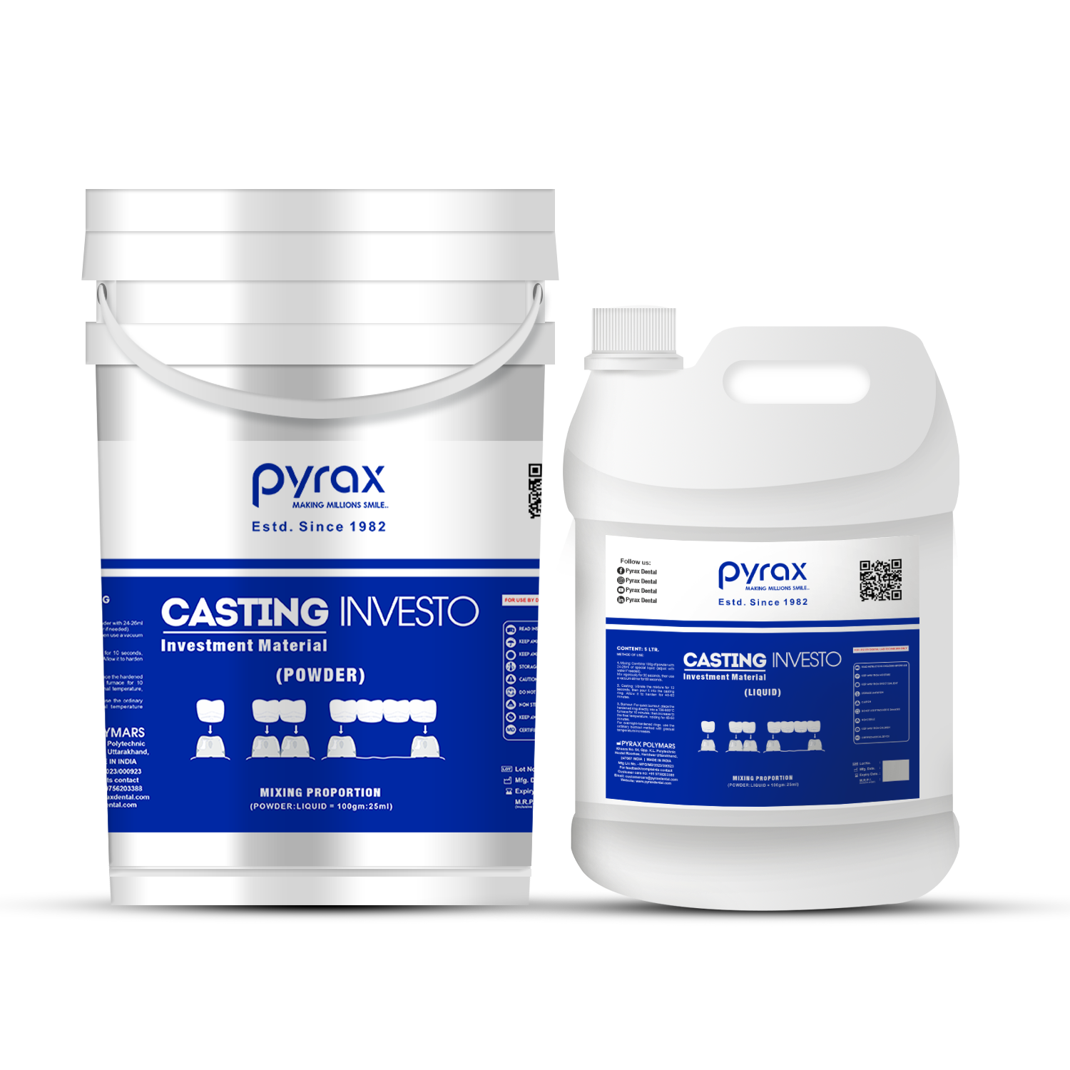 Dental investment material is a specially formulated refractory material used in dental laboratories to create accurate molds for casting crowns, bridges, inlays, onlays and partial denture frameworks. It is mixed with liquid to form a smooth, pourable consistency that precisely reproduces fine surface details of wax patterns. After setting, the investment provides sufficient strength and controlled expansion to compensate for metal shrinkage during casting.